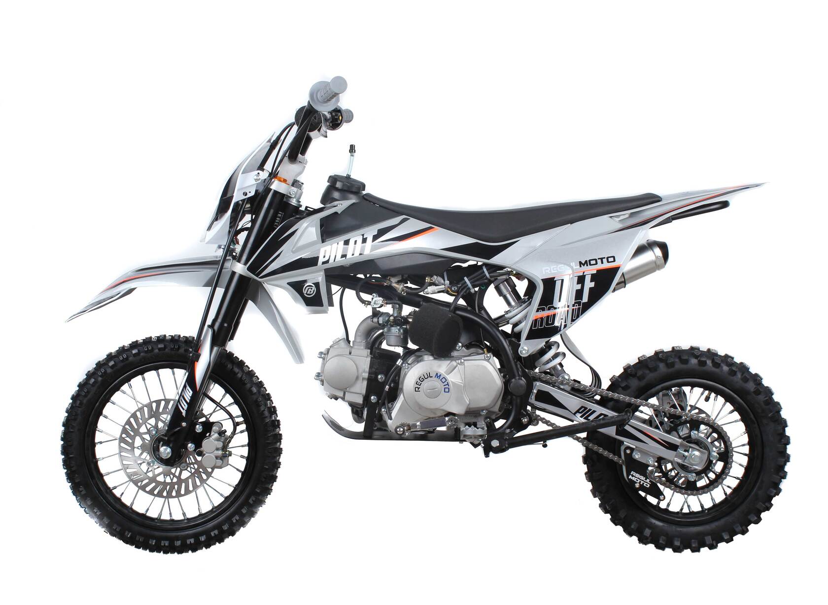 Regulmoto Pilot 110 c электростартером и полуавтоматической коробкой передач – питбайк начального уровня, созданный специалистами Американского мотобренда PitsterPro для юных мотогонщиков.Данная модель представляет линейку мототехники Regulmoto модельного ряда 2021 года, отличается высокой надежностью и простотой в эксплуатации.В прочной и надежной раме питбайка стоит 4х-тактный двигатель YX110 воздушного охлаждения с 4-ступенчатой полуавтоматической трансмиссией.Высокий класс используемых комплектующих обеспечивают необходимый для внедорожной мототехники уровень надёжности и комфорта.Яркая светодиодная фара позволяет использовать питбайк также в тёмное время суток.В 2021 году Regulmoto Pilot получил ряд обновлений – кроме нового дизайна графики, изменения коснулись дизайна пластикового обвеса, подножек, рычагов тормоза, переключения передач и глушителя.Эта модель рассчитана на детей и подростков возрастом от 6 до 12 лет.Наличие полуавтоматической трансмиссии позволяет детям и подросткам с минимальным опытом управления двухколесной мототехникой быстро освоить основы и совершенствовать навыки вождения на бездорожье.