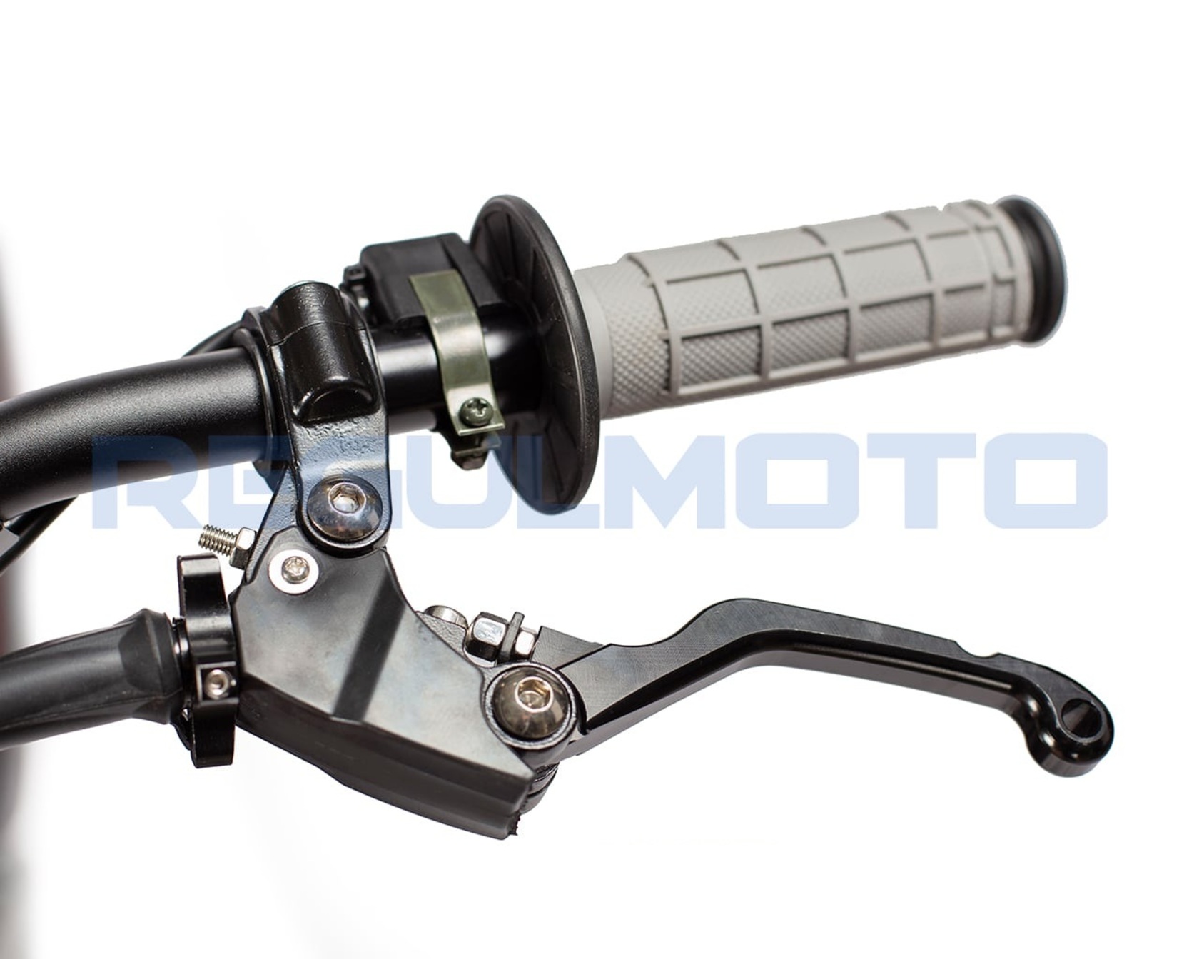Питбайк Regulmoto SEVEN MEDALIST PRO 19/16 - популярная модель питбайка, которую отличают взвешенный подбор комплектующих и широкий эксплуатационный потенциал. Высокий по седлу питбайк подходит райдерам с ростом выше среднего, а возможности аппарата позволят его владельцу использовать технику для спортивных развлечений и совершенствования навыков управления.В стальной раме Regulmoto SEVEN MEDALIST PRO, покрытой защитным напылением Raptor и оснащенной дополнительными защитными накладками, устанавливается надежный и производительный одноцилиндровый 4-тактный мотор с электростартером, который работает в паре с карбюратором Nibbi PE19. Для передачи крутящего момента на заднее колесо питбайка задействована механическая 4-ступенчатая трансмиссия и цепная передача, где ведомая звезда и сальниковая 428-я цепь – производства бренда Choho.Подвеска обновленной модели была доработана для наилучшей производительности в различных условиях использования питбайка; используются амортизаторы KKE. Колеса собраны на усиленных алюминиевых дисках с 36-ю спицами, в стоке оснащены буксаторами и качественными внедорожными покрышками. Среди других комплектующих и компонентов. Особенности питбайка: • высокий толстостенный руль с перемычкой ProTaper EVO из алюминия с возможностью регулировки вылета;