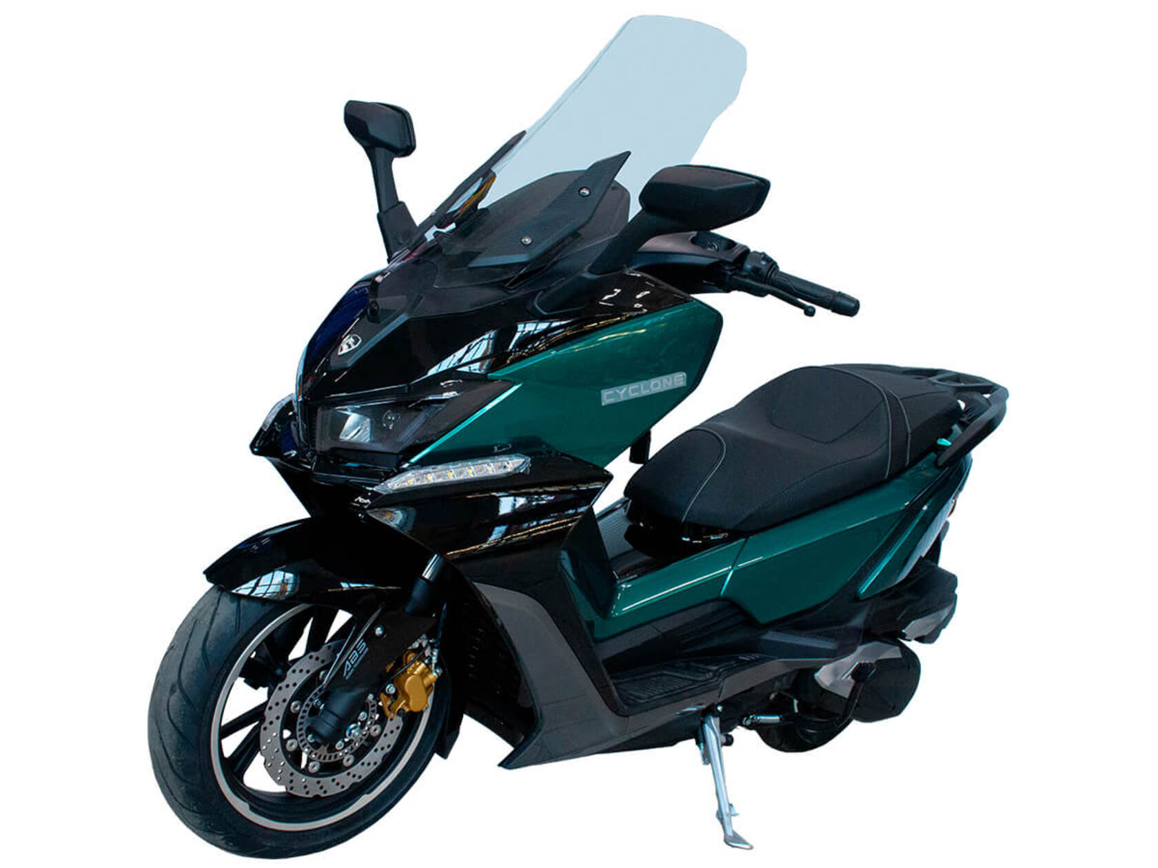 CYCLONE RT3S (SR300T) – городской максискутер, сочетающий в себе мощный двигатель, богатую компоновку и изысканный современный дизайн.Силовая установка представляет собой одноцилиндровый четырёхтактный двигатель объёмом 289 см3 имеет мощность 25 л.с. при 7500 об/мин. Максимальный крутящий момент достигается на 6000 об/мин и составляет 26,5 Н·м. Эти показатели позволяют RT3S по скоростным характеристикам конкурировать не только со скутерами, но и со среднекубатурными мотоциклами.Инжекторный впрыск топлива с блоком управления BOSCH увеличивает топливную экономичность, а также позволяет добиться высокой приёмистости и неприхотливости агрегата. Жидкостная система охлаждения не допустит перегрева двигателя даже при самом агрессивном вождении.На скутер установлен вариатор, который обеспечивает динамичную езду как в условиях городских пробок, так и на скоростных автострадах.Колёса скутера имеют литые диски диаметром 14 и 15 дюймов. Колёса обуты в бескамерные покрышки TIMSUN. Клиренс скутера составляет 155 мм. Подвеска представлена классической телескопической вилкой спереди и двумя газонаполненными амортизаторами сзади. Ход передней подвески составляет 129,5 мм, задней – 97,5 мм.Сухой вес скутера составляет 202 кг. Эффективное и безопасное замедление с любых скоростей обеспечивают гидравлические дисковые тормоза с ABS фирмы BOSCH спереди и сзади.Объём топливного бака этой модели – 17 литров.Модель имеет два видеорегистратора, электрорегулируемое ветровое стекло, подсветку пультов, возможность бесключевого доступа, датчики давления в шинах и USB-порт.Скутер сочетает в себе отличные технические характеристики, комфорт и надёжность, что позволяет вам ощутить настоящую свободу и всегда быть в ритме мегаполиса.