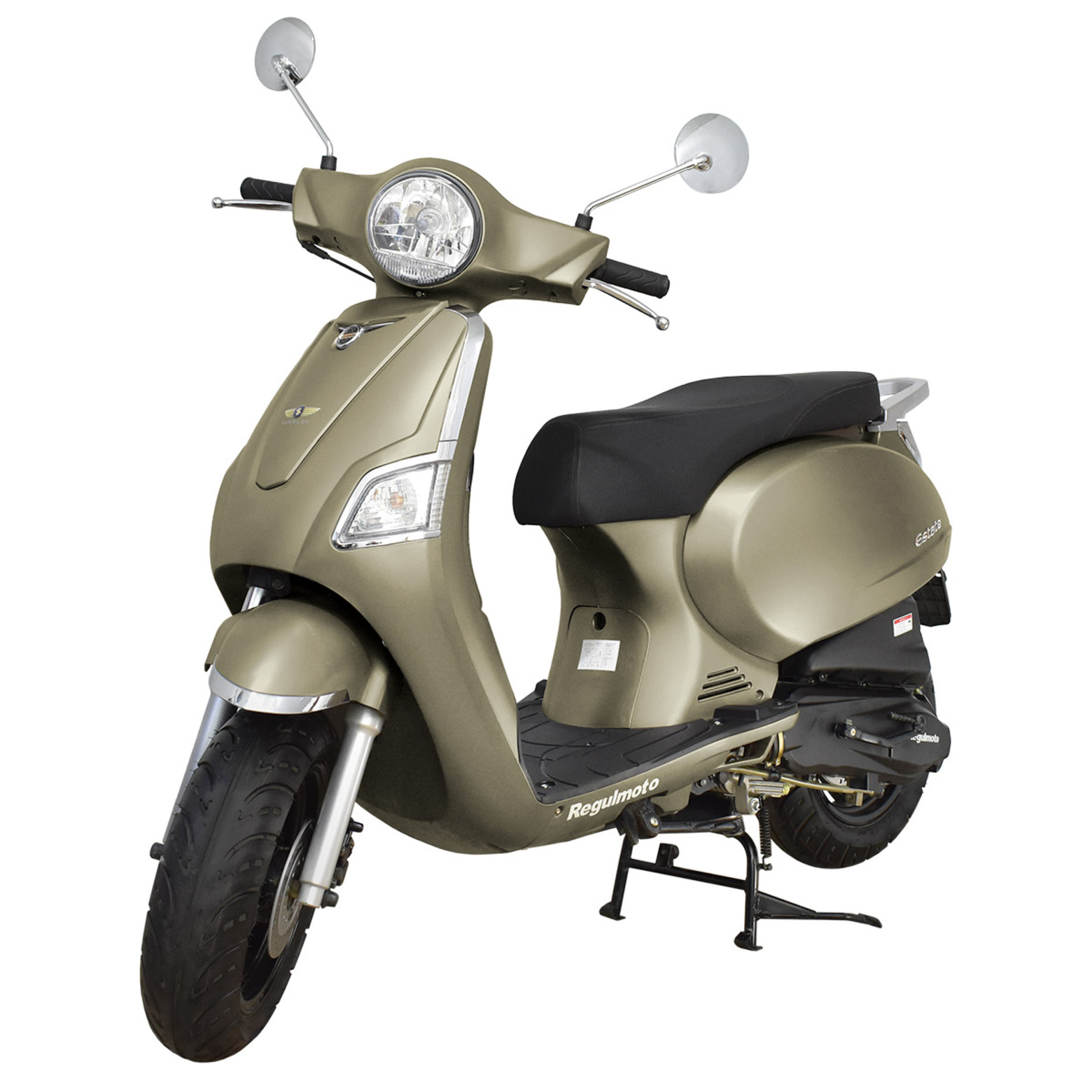 Питбайкмаркет представляет вниманию поклонников утилитарной мототехники скутер Regulmoto Estate 125 (LJ125T-V), который Вы можете приобрести в нашем мотосалоне и интернет-магазине с доставкой до терминала транспортной компании-перевозчика в Вашем регионе.Данная модель скутера производства китайской компании Ningbo Longjia Motorcycle широко известна европейским поклонникам малокубатурной мототехники. Под именем Longjia 125T-V завоевал определенную популярность в Великобритании, Италии, Польше и других странах ЕС. Потребителей привлекают отличный внешний вид скутера, высокое качество компонентов и качественная сборка, доступная цена и невысокая стоимость сервисного обслуживания.Дизайн скутера выполнен в узнаваемом ретро-дизайне, однако множество используемых компонентов мототехники соответствуют актуальным тенденциям мотоиндустрии. Литые колесные диски с 12-дюймовыми широкими покрышками, надежные дисковые тормоза на переднем и заднем колесах, электростартер, подвеска, представленная телескопической вилкой спереди и гидравлическим амортизатором сзади, – все это говорит о большем уровне безопасности и комфорта при повседневном использовании скутера.Скутер Regulmoto Estate 125 оснащается 4-тактным двигателем с воздушным охлаждением. В паре с инжектором мотор рабочим объемом 124 см3 демонстрирует 8,8 максимальной мощности при 8000 оборотах/мин; максимальная развиваемая скорость составляет 90 км/ч. На скутере реализована автоматическая трансмиссия с ременным вариатором, простая и надежная в эксплуатации конструкция. Дополнительное оборудование представлено полным комплектом светотехники, приборной панелью, зеркалами заднего вида.Легкость управления, надежность и неприхотливость Regulmoto Estate 125 будут на руку, как начинающим, так и опытным водителям. Технические характеристики оборудования и широкие эксплуатационные возможности скутера позволяют ему стать отличным вариантом выбора надежного транспортного средства для ежедневных поездок в черте города и за его пределами.