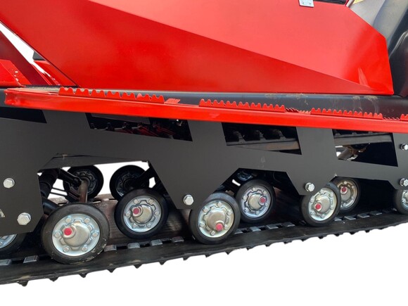 Флагманская новинка зимы 2023 «Бурлак Беркут CS» на склизовой подвеске.Ключевые особенности «Бурлак Беркут CS»:стильный дизайн,горизонтальное подмоторное основание,обновленный узел натяжки цепи, исключающий ее проскальзывание, электропроводка в гофротрубе, блок предохранителя,усовершенствованный конструктив передней подвески,металлическая защита рулевых тяг.В комплектацию входят:двигатель 20, 24 или 27 л.с. с передним расположением,гусеница LONG шириной 500 мм,склизовая подвеска,вариатор "Сафари",электричский запуск,гидравлический тормоз,реверс,2 металлические опорно-поворотные лыжи,спидометр, тахометр,2 основные фары, стоп-сигнал,прикуриватель,зеркала заднего вида.