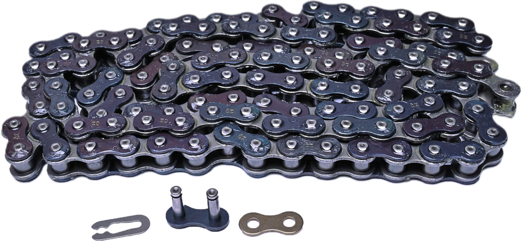 Простая и надёжная приводная цепь для мотоциклов, питбайков, мопедов и детских квадроциклов. Типоразмер — 420. Изготовлена из высококачественных материалов, не имеет сальников, что делает её удобной для лёгкой техники и уменьшает стоимость обслуживания.