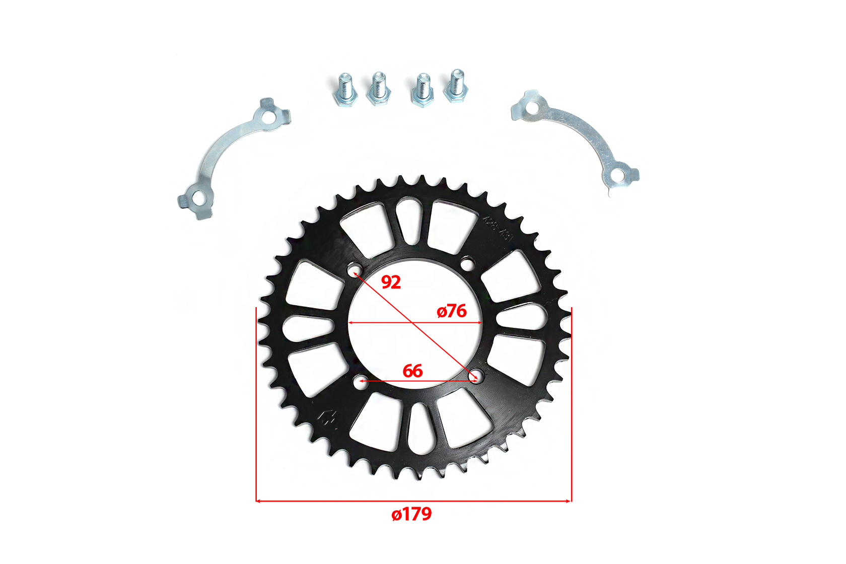 Задняя ведомая звезда для питбайков с 39 зубьями, предназначенная для цепи типа 420. Изготовлена из прочной стали с закаленными зубьями для повышенной износостойкости. Центральное отверстие 76 мм, крепление по схеме 4×92 мм. Совместима с питбайками 125-190 см³.